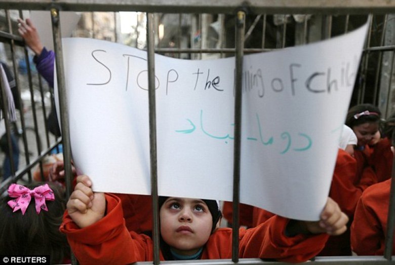 Ativistas colocam crianças em gaiola em protesto contra ataques sírios