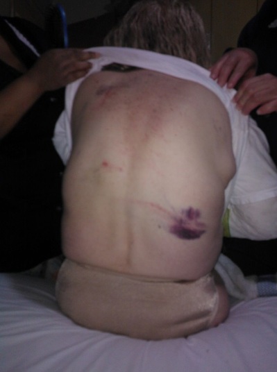 Laura está com o nariz e um braço quebrados, várias marcas roxas pelo corpo, ligamentos das pernas rompidos e dezenas de pontos no couro cabeludo, após passar por uma cirurgia para tratar um traumatismo craniano. Ela ainda perdeu todos os dentes da parte superior da boca.